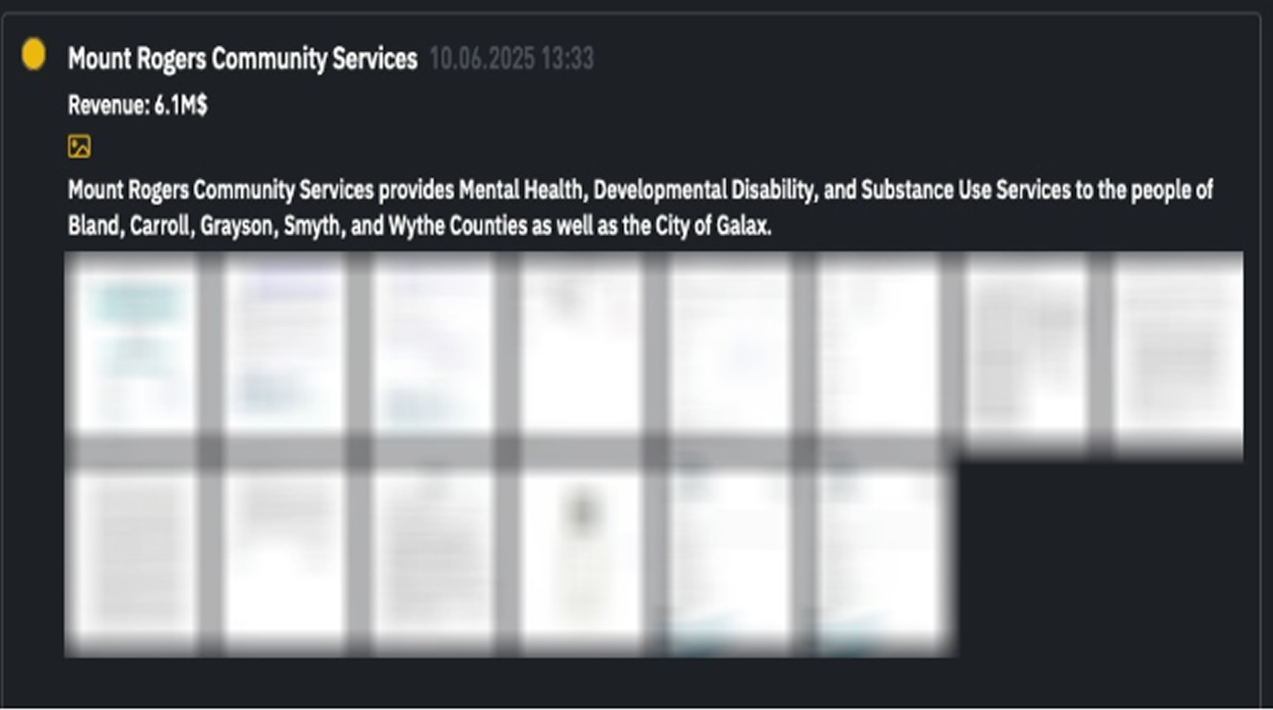 Mount Rogers Community Services has appeared on the dark web leak site of a ransomware group, which claims to have stolen sensitive data from the organization’s systems.