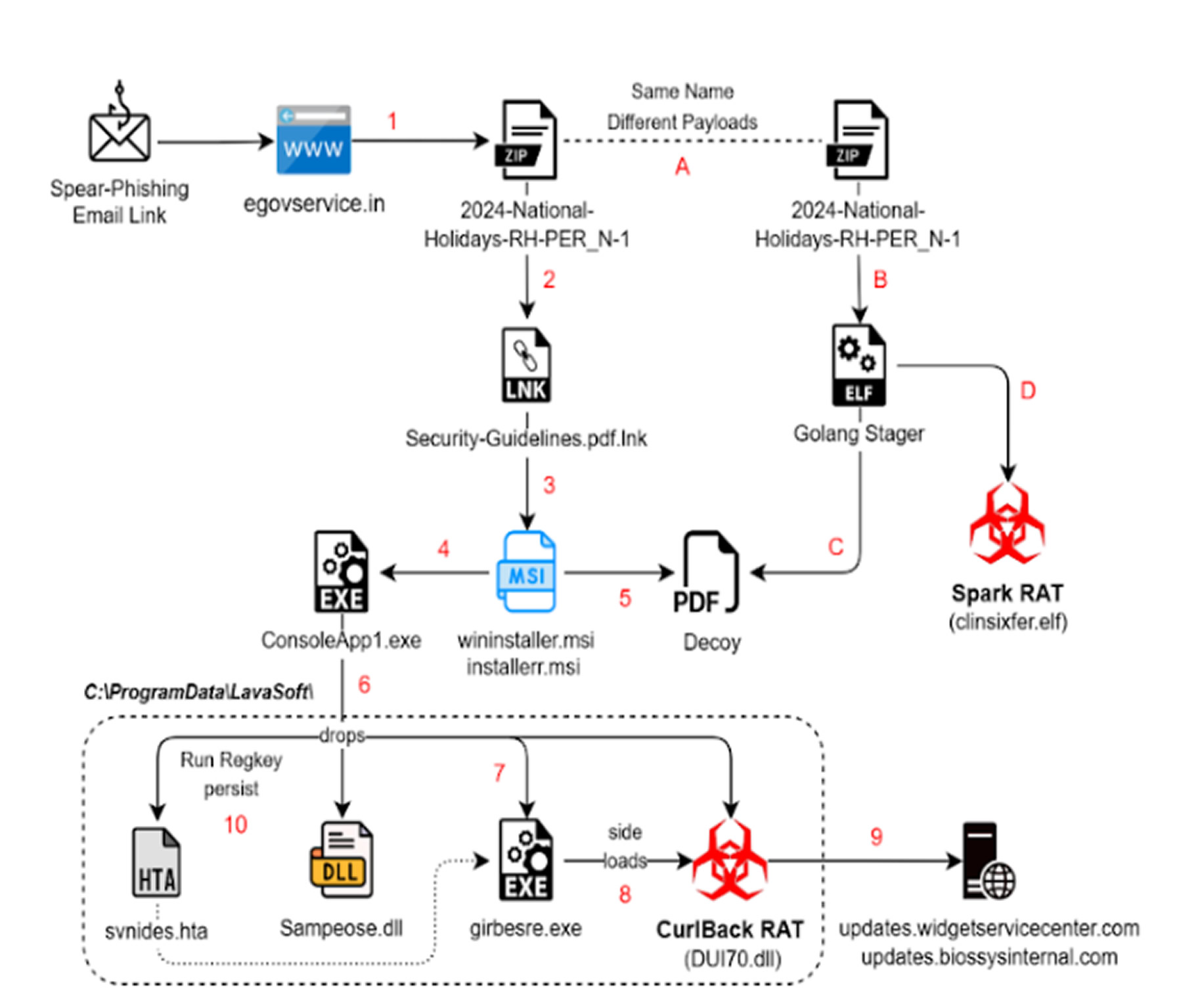 One activity cluster revealed the use of both Windows and Linux malware, featuring Spark RAT, a cross-platform remote access trojan, and the new CurlBack RAT. CurlBack is capable of: