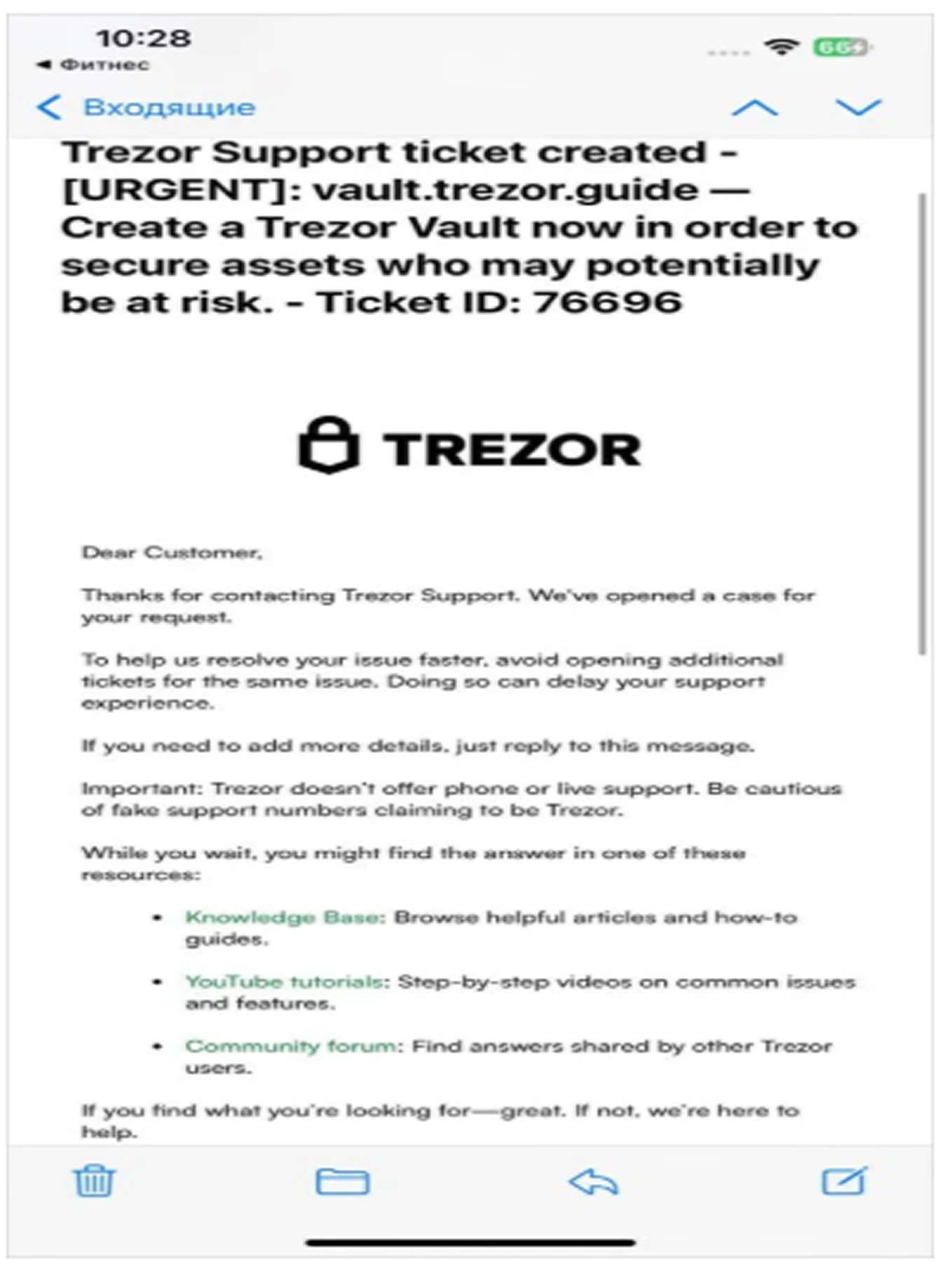 Trezor has issued a warning to its users about a phishing campaign that exploits its automated support system to send misleading emails that appear to come from its official platform.