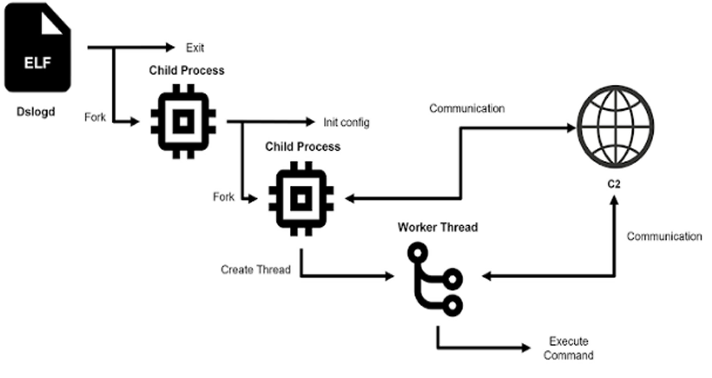 Once installed, DslogdRAT establishes a socket connection to an external server, transmits basic system info, and waits for further commands. It can execute shell commands, upload or download files, and use the infected device as a proxy.