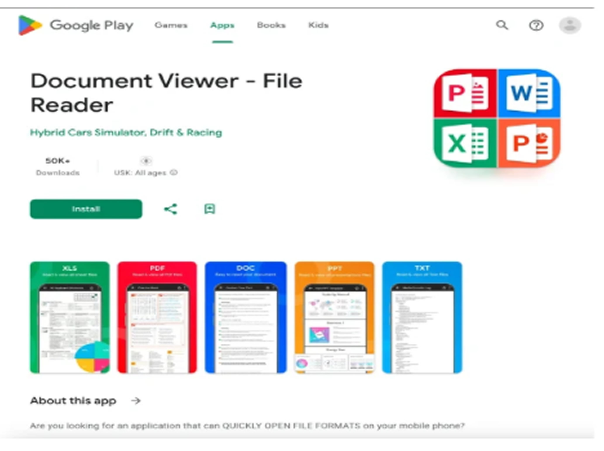 The most recent app targeting North American users was called Document Viewer. Its package name was "com.stellarastra.maintainer.astracontrol_managerreadercleaner," and it was published by a developer named "Hybrid Cars Simulator, Drift & Racing." Both the app and the developer’s profile have been removed from the Play Store.