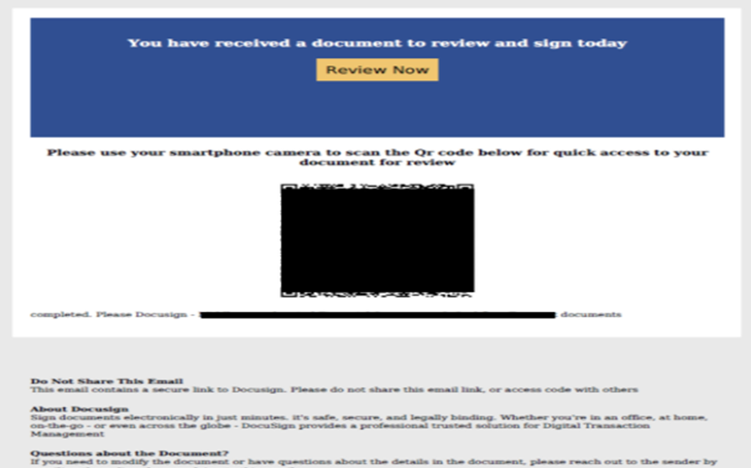 Victims typically receive emails impersonating trusted services like Adobe Acrobat Sign, DocuSign, or HR payroll updates. These emails contain PDF attachments with embedded QR codes, urging users to scan them to “sign a document.” The realistic branding, including company logos and official-sounding subject lines, makes it difficult for users to detect the scam.