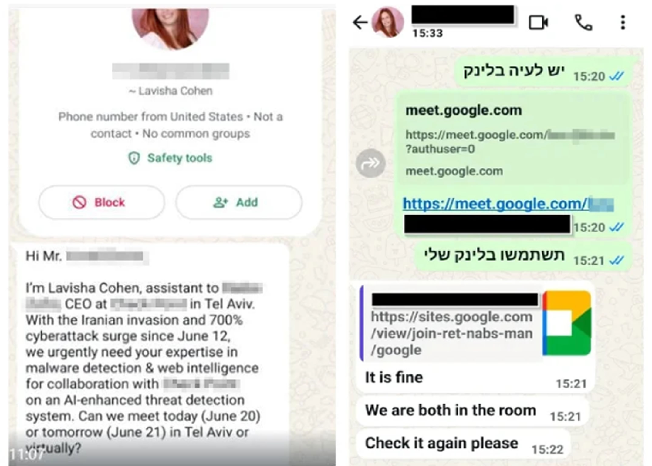 According to a report published by Check Point, attackers in these campaigns posed as fake assistants to tech executives or researchers, reaching out via emails and WhatsApp messages. Once targets responded, they were directed to fake Gmail login pages or fraudulent Google Meet invitations.
