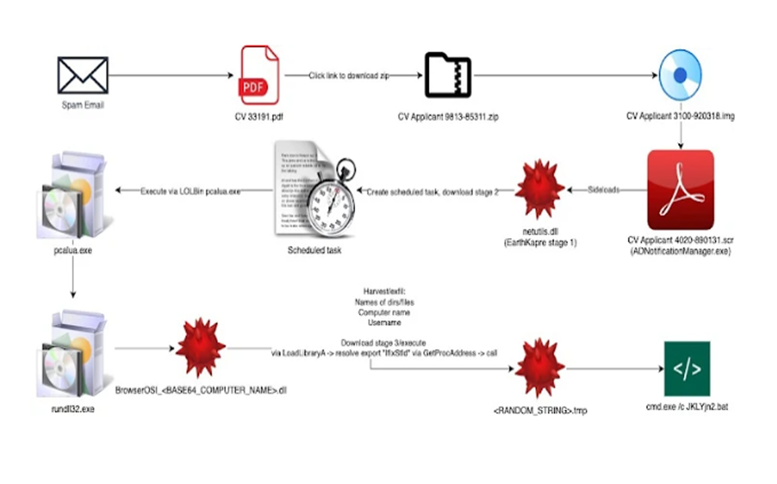 More recently, eSentire revealed that RedCurl had been using phishing emails with malicious PDF attachments disguised as CVs and cover letters. These emails exploited the legitimate Adobe executable “ADNotificationManager.exe” to sideload their loader malware. Bitdefender’s latest findings indicate that the attackers have continued this approach, now using mountable ISO files masquerading as CVs to initiate a multi-stage infection process. These files contain a Windows screensaver (SCR) file that, in reality, is the ADNotificationManager.exe binary. Once executed, it triggers DLL side-loading to deploy the loader (“netutils.dll”).