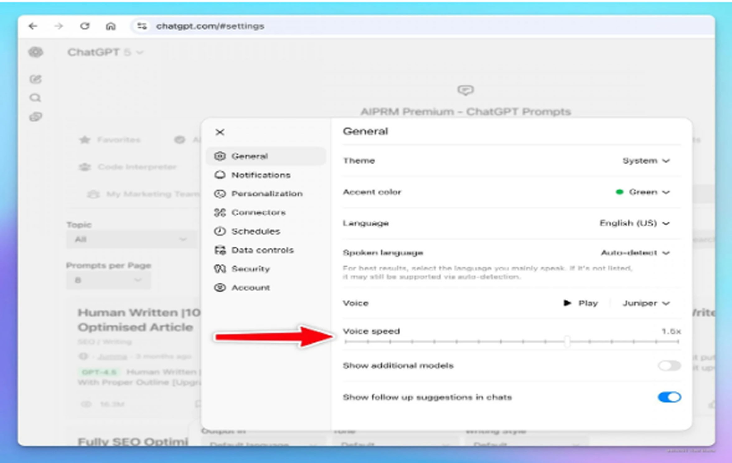 The company has added a "Voice speed" option to the ChatGPT web app, allowing users to adjust how fast the AI speaks. With a slider, you can set the speed from 0.5x to 2.0x. These settings are currently not visible to users.