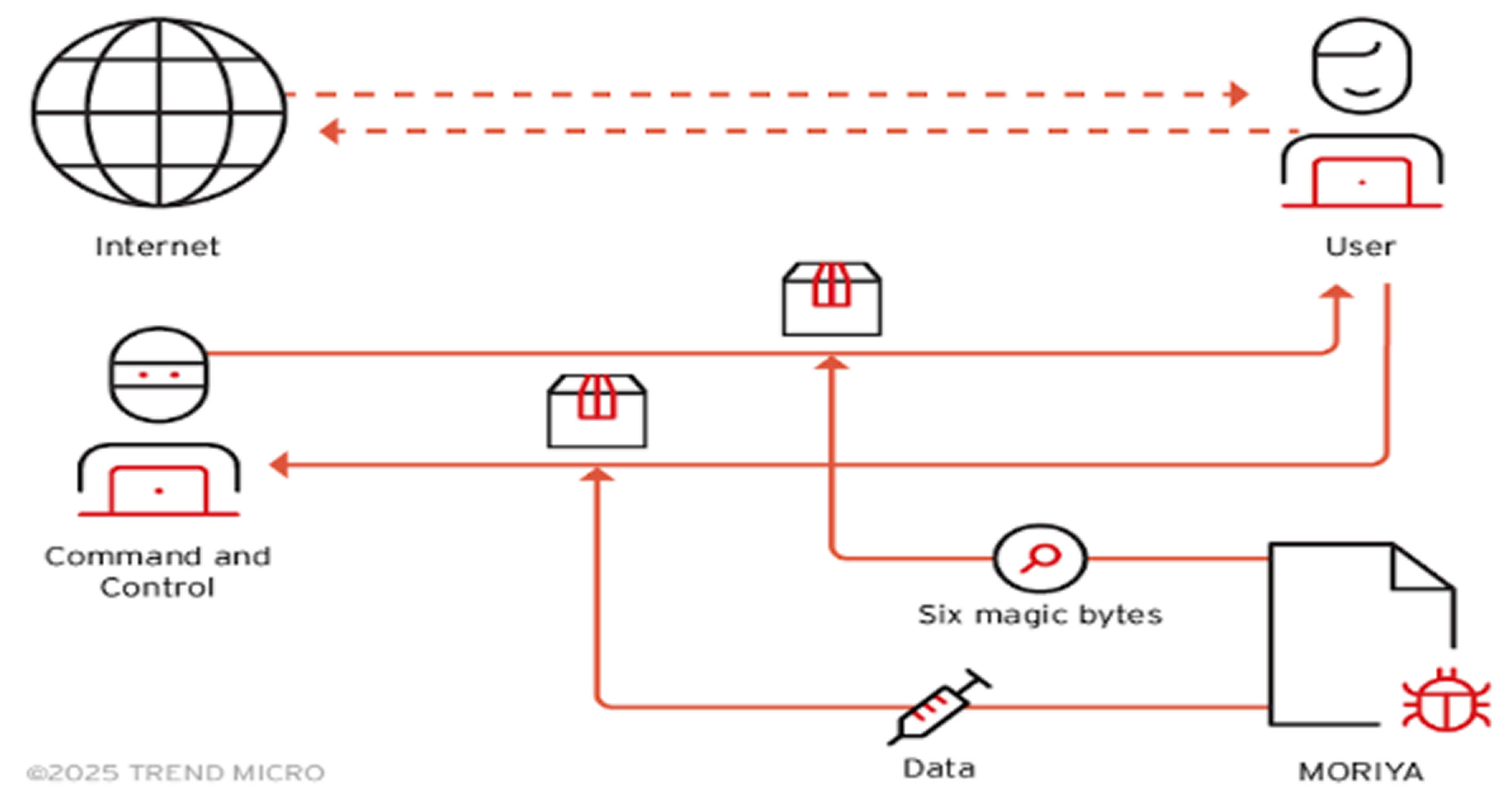 Moriya monitors incoming TCP packets for malicious data, injecting shellcode into processes like svchost.exe. Meanwhile, KRNRAT, built from five open-source projects, offers functions like file hiding, process manipulation, and encrypted C2 communications. KRNRAT also uses a user-mode agent injected into svchost.exe to maintain access.