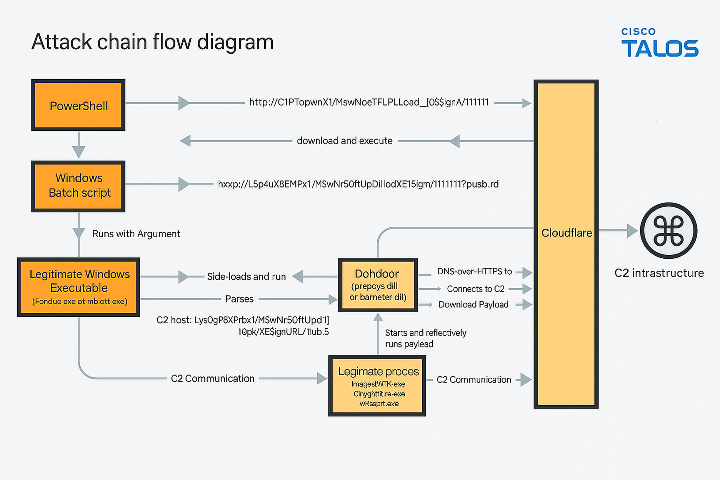 Attribution remains unclear, but Cisco Talos observed operational resemblances between Dohdoor and LazarLoader, a downloader previously tied to North Korea’s Lazarus Group in campaigns targeting South Korea.
