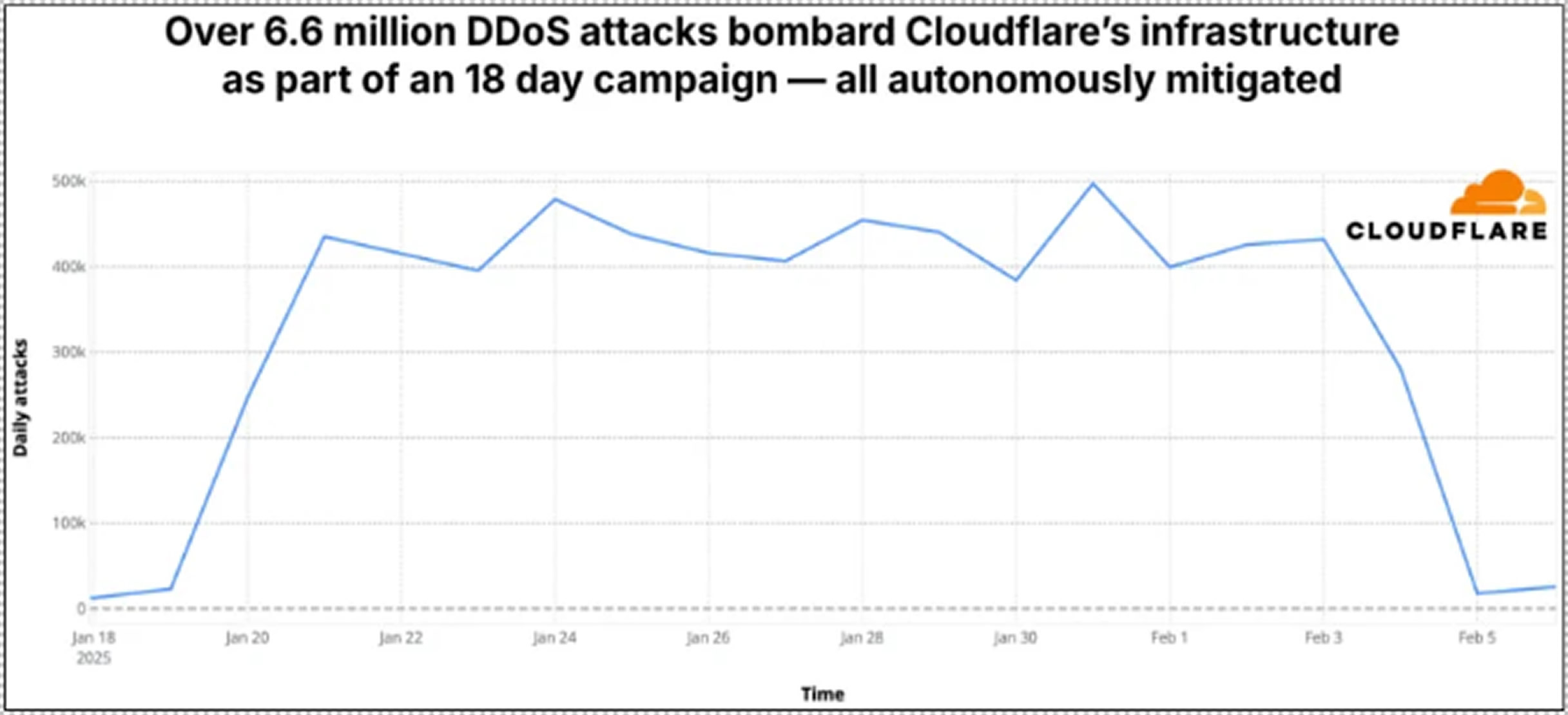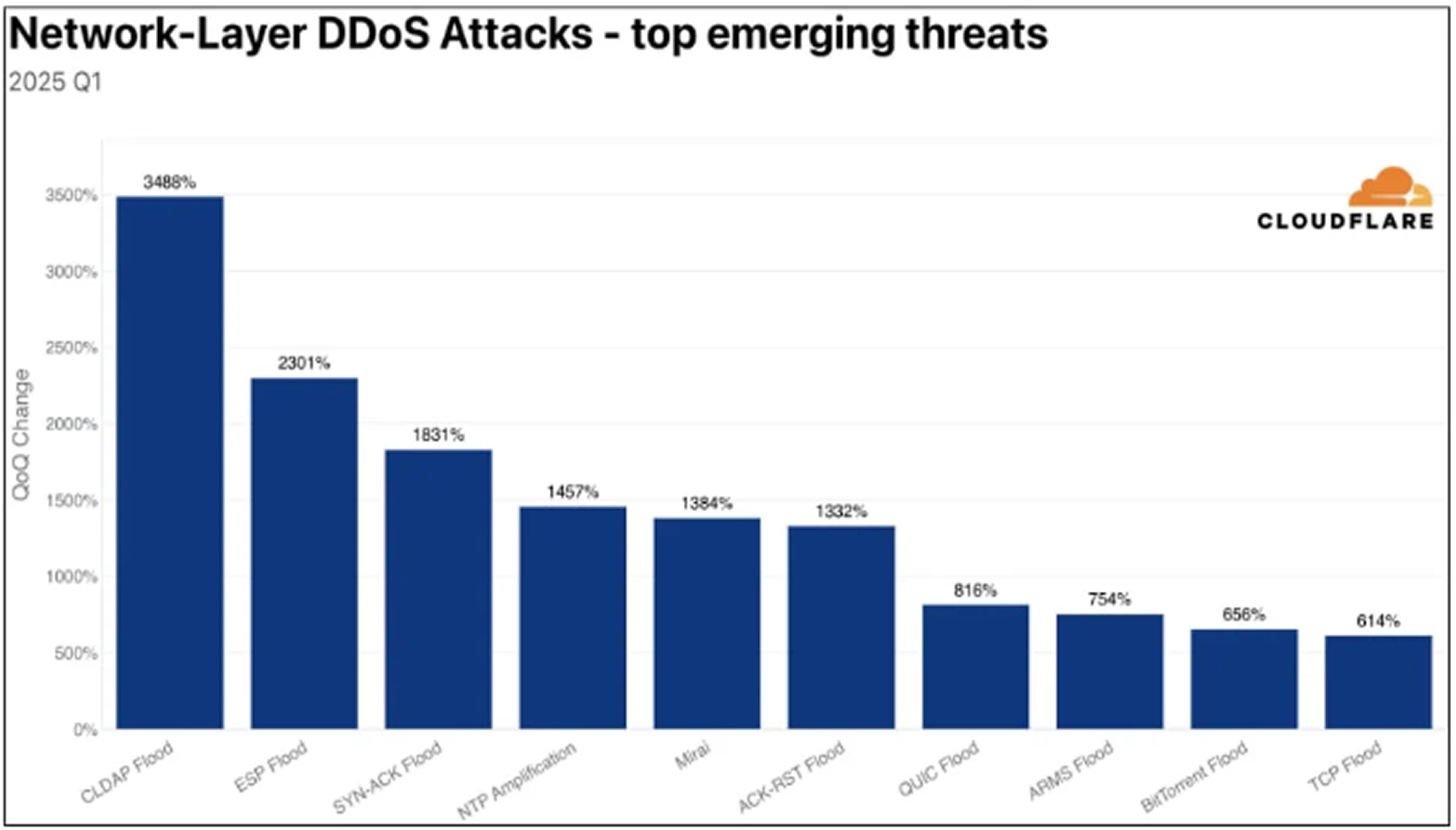 marking a 358% increase year-over-year and a 198% rise quarter-over-quarter. As of Q1 2025, the company has already dealt with 20.5 million DDoS attempts, including 6.6 million attacks targeting Cloudflare's own infrastructure during an 18-day multi-vector campaign.